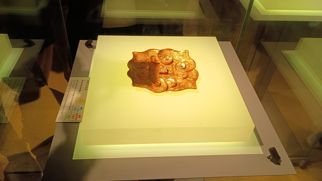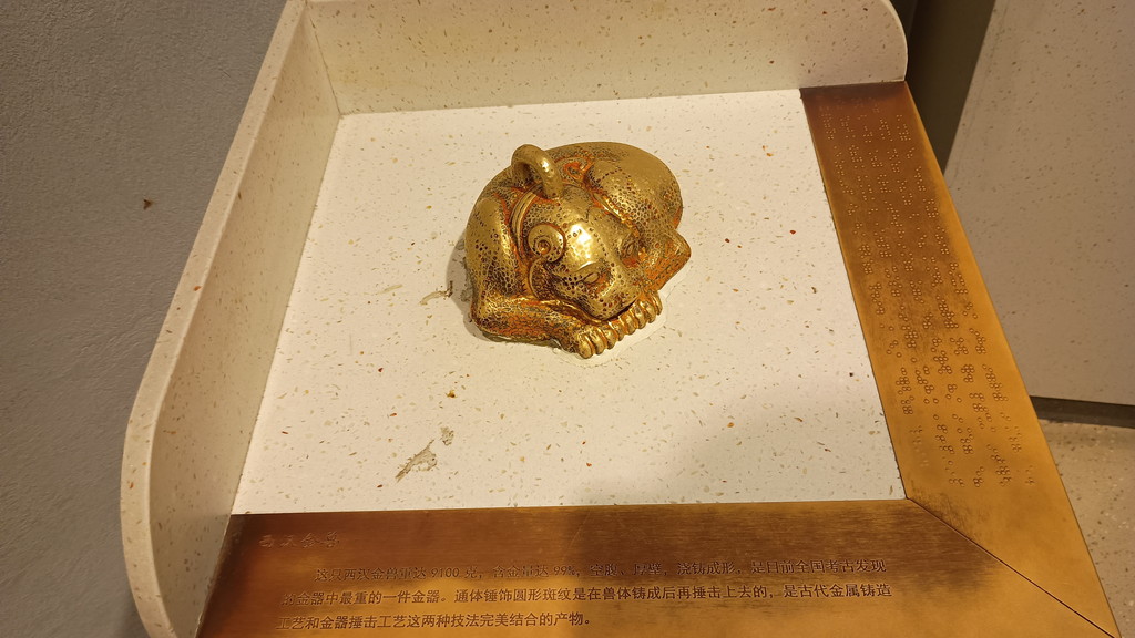 理由は不明ですが、このコーナーの片隅に前漢時代の金獣が展示されていました。純度99%と正真正銘の純金です。この時代にこれだけの精錬技術があった証拠になります。