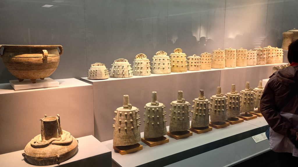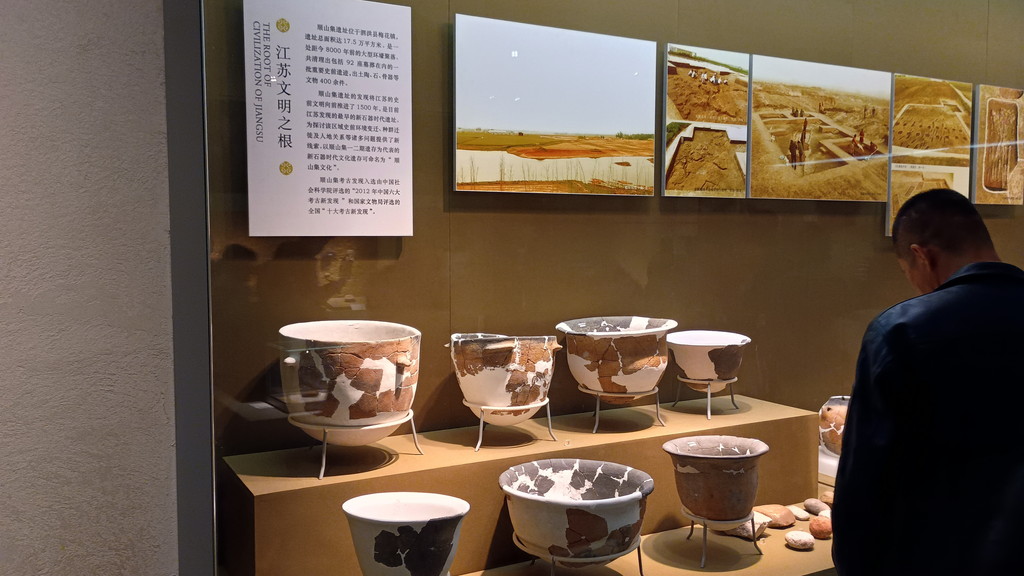 第2部は、青銅器時代から春秋・戦国時代がテーマとなっています。中国の中原(現在の河南省辺り)が夏や商(殷)の時代、現在の江蘇省一帯はまだ青銅の時代だったと説明されており、鼎などの発掘品が展示されていました。現在の状況からは想像するのが難しいですが、古代の江南地方は中原からは遠く離れた文明の遅れた化外の地と見なされていました。