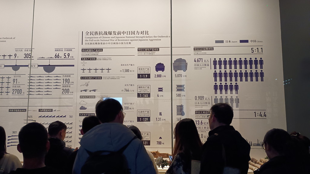 当時の日中の戦力比較がされています。中国の人口が日本の約5倍近くあったものの、工業生産量は日本が圧倒しており、これが航空戦力などの差に繋がっていることが分かります。