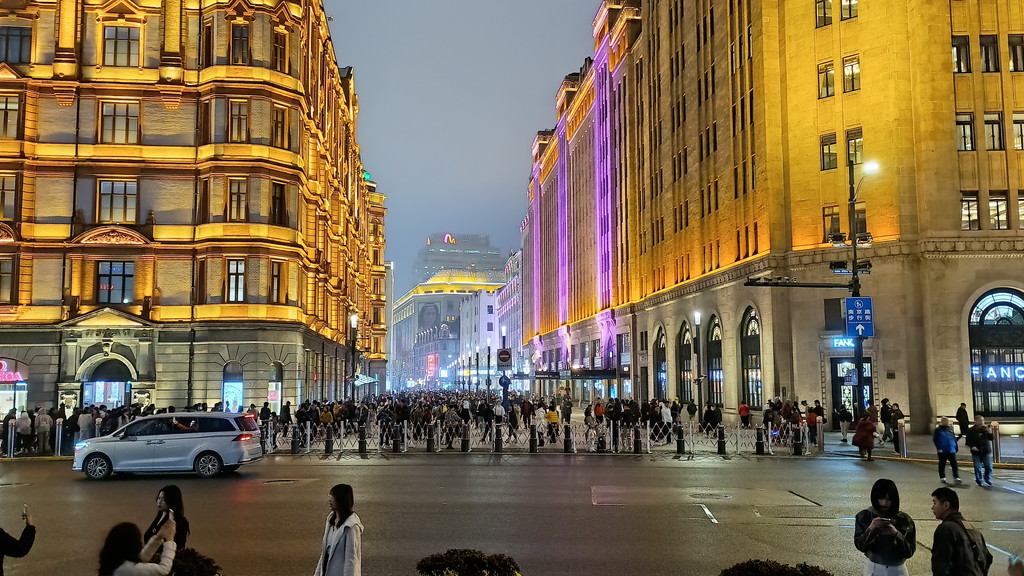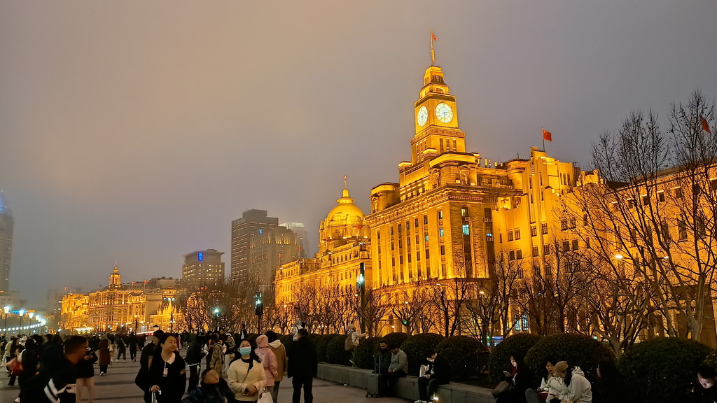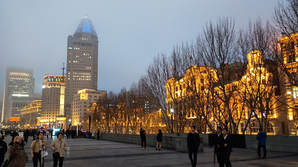 辺りも暗くなってきたので、ここからは歩いて「外灘」に向かい、上海で一番見たいと思っていた夜景を楽しみたいと思います。外灘は、黄浦江の西側を走る中山東一路沿い、約1.5kmのエリアです。このエリアは、19世紀後半から20世紀前半にかけての租界地区であり、当時に建設された西洋式の高層建築が並んでいます。英語名では、人口の土手や堤防を意味するバンド(The Bund)と呼ばれていました。