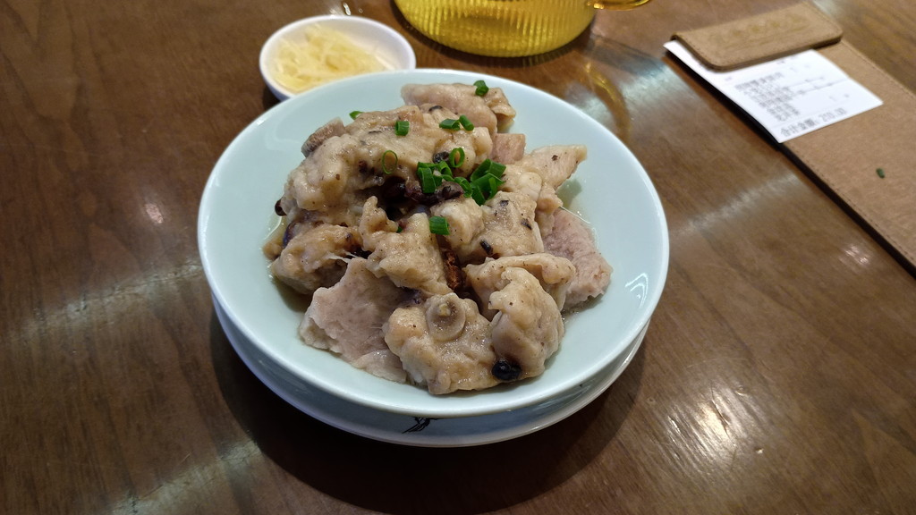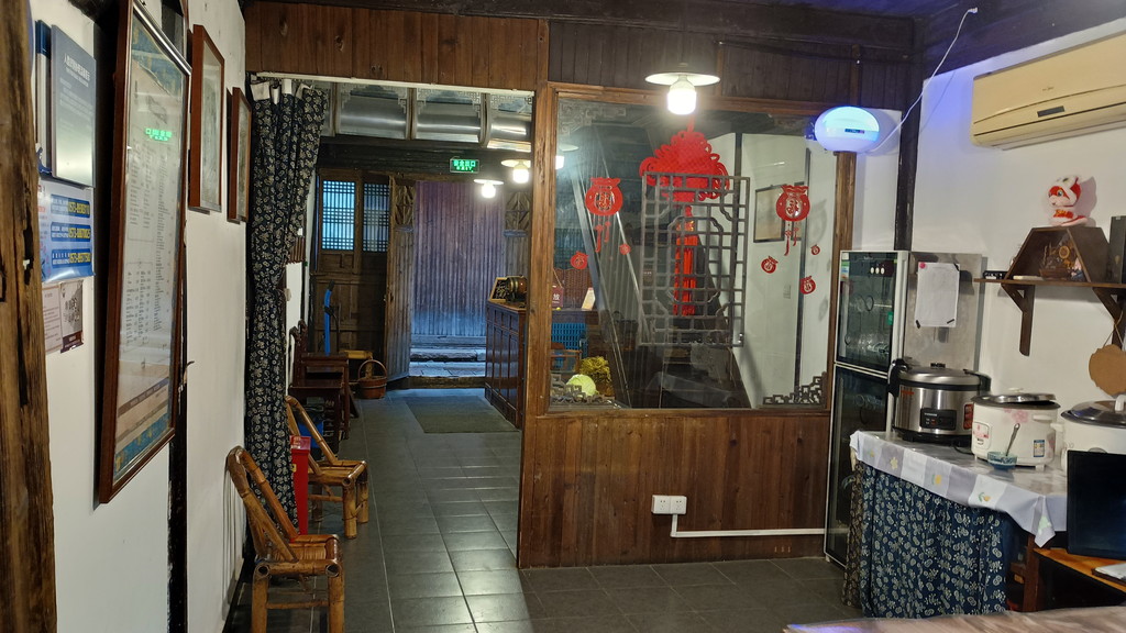 牌楼から少し歩くと、お店はすぐ見つかりました。1階がテイクアウト専用、2階と3階がレストランになっています。入口に入って、細長いフロアを進むと階段があったので上がります。事前に確認した情報では、2階と3階ではメニューが異なり、3階が高級店になっていると確認していたのですが、現在はどちらも同じ料理を提供していると書いてありました。とりあえず空いていそうな3階に行ってみました。