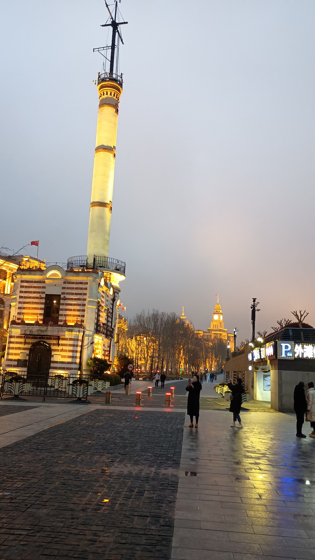 すぐ近くには、塔のような細長い建物が立っていたのですが、これは「外灘信号台」といい、高さは約50mで、かつては信号機を掲げて黄浦江を航行する船舶に気象情報を伝達したそうです。