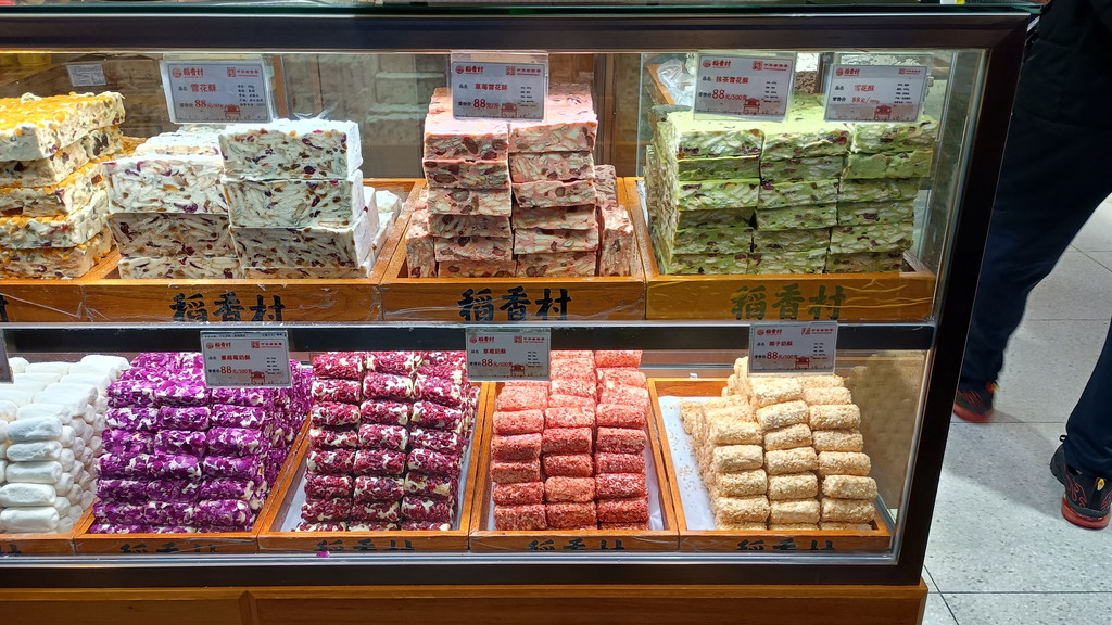 中心広場の近くに、「稻香村」というお店が目に止まったので入ってみました。清王朝の乾隆帝の時代に創設された、糕点業界で最も歴史のある企業の一つだそうです。