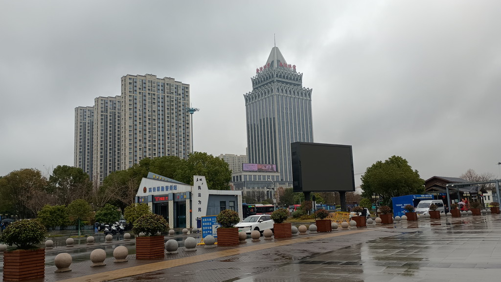 高速鉄道の乗車時刻までは、まだ2時間近くの余裕があったので、少し駅周辺をブラついてみました。桐郷駅は典型的な郊外の駅なので、特に見どころは無く、前方には高層ビルがいくつか見えるのみです。地図アプリによると、1つはホテルの建物のようですが、鳥鎮の観光目的で来るお客さんが利用するとは思えず、部屋数もかなり多いでしょうに、本当に商売が成り立っているのだろうかと不思議に思いました。