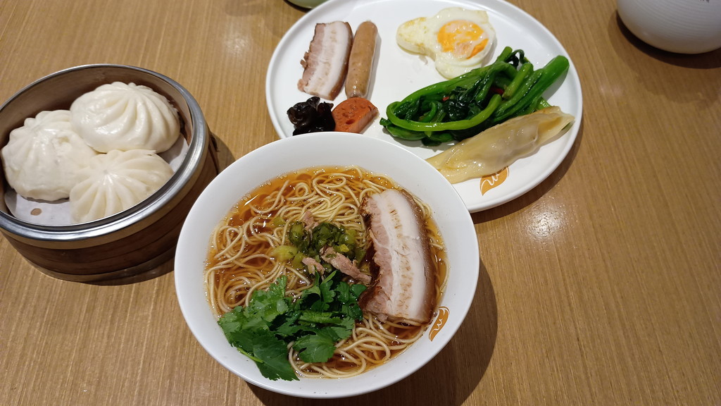 昨晩は、移動続きで疲れた影響か早く寝てしまったのですが、途中目が覚めることもなく朝まで爆睡でした。身支度をしていると7時を過ぎたので1Fのレストランで朝食を頂きます。レストランは広く、モダンで落ち着きのある内装でした。こちらではビュッフェ形式の朝食となっており、メニューが充実していて蘇州の名物料理を食べることもできました。蘇州では蘇州麺だけは食べたいと思っていたのですが、わざわざお店を探さなくてもこちらのホテルで済んでしまいました。蘇州麺は日本のスタンダートな醤油ラーメンに近く、麺は細麺で、これに野菜やチャーシューなどの具をトッピングして食べるのですが、期待通りの食べやすさと美味しさで満足です。他にも小籠包や肉まんといった料理も並んでおり、これに加えてサラダや果物も種類が多く、ケーキなどのデザートも用意されており食べ応えがありました。ここ何年間かで利用したホテルの朝食で一番良かったと思います。初日だったこともあり、興味が湧いた料理を片っ端から食べたので、明らかに許容量をオーバーしてしまい、この日は午後になっても食事する気が起きませんでした。