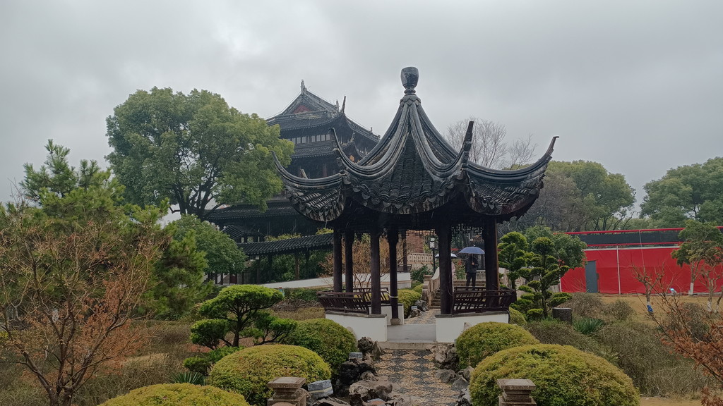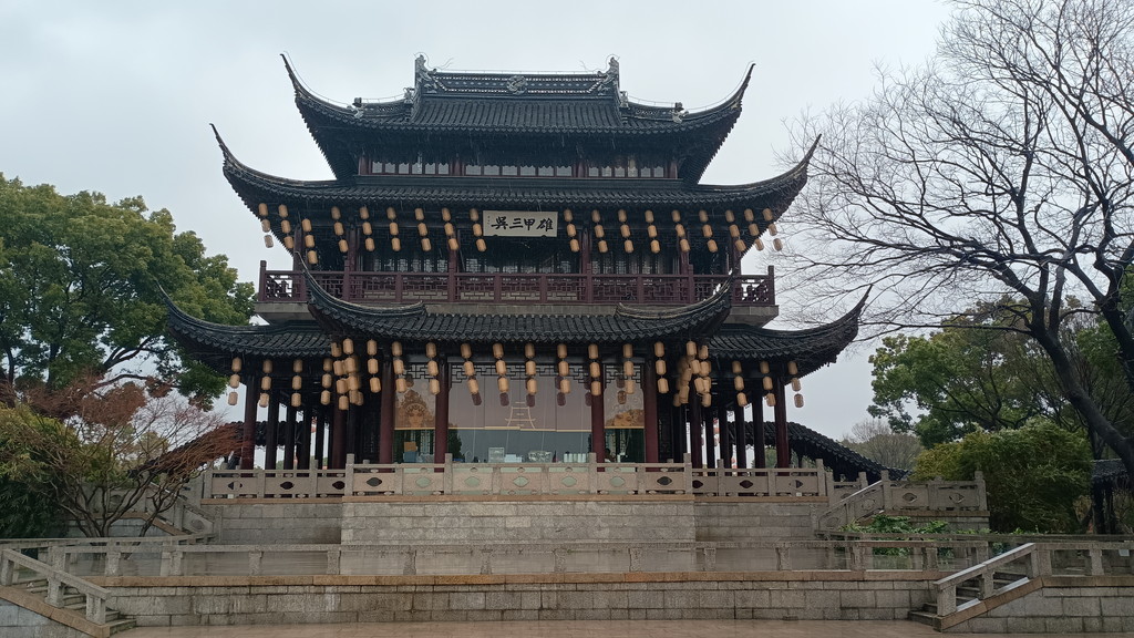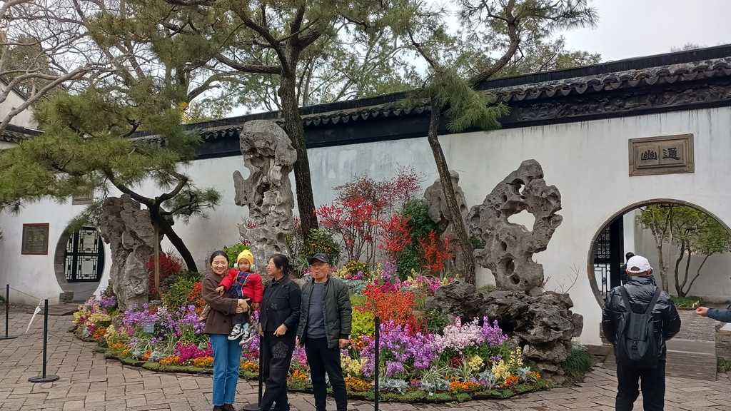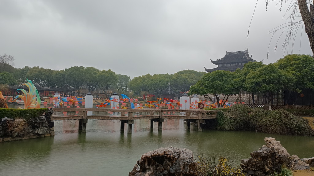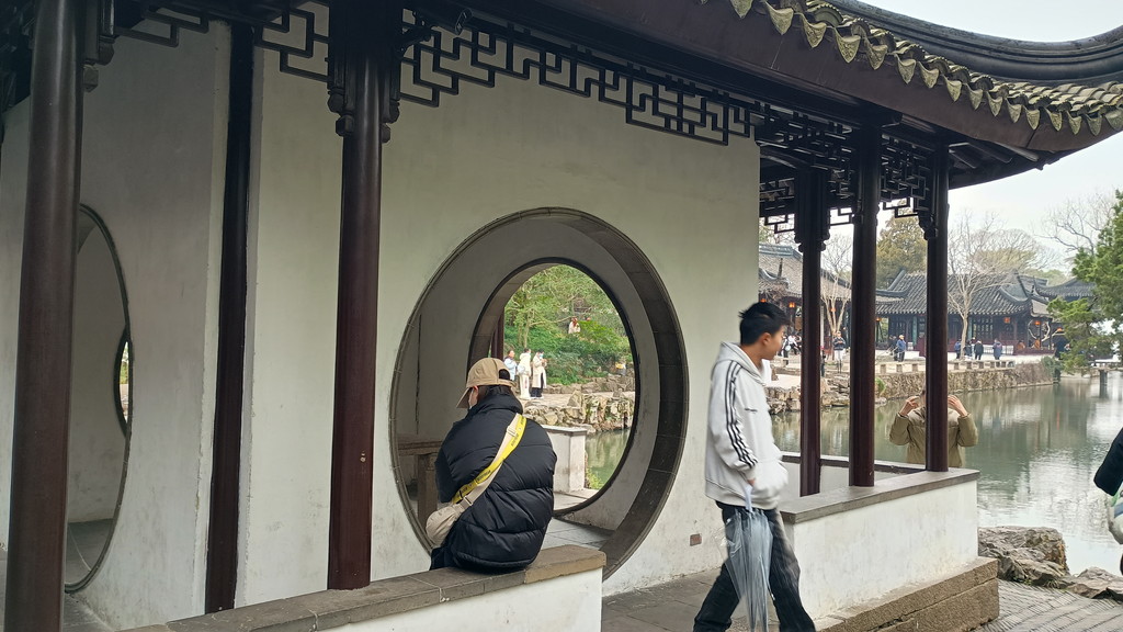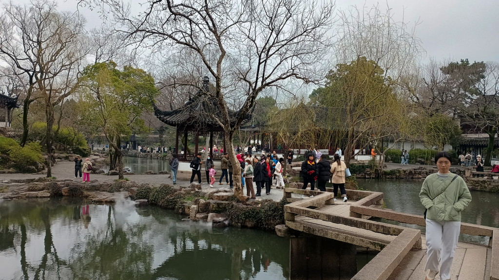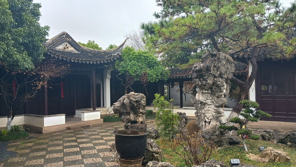 伝統的な庭園が何たるかは全く分かっていませんが、中国歴史ドラマで見たことがあるような建物や曲がりくねった回廊が中央を池を取り囲むように配置されています。この時は、雨も強くなって寒かったのですが、そのおかげか観光客の数も少なく静かな雰囲気の中散策することができました。この後に観光した拙政園などに比べると認知度が低いのか、あちらこちらで見かけた漢服を着た若い方々の姿もありません。