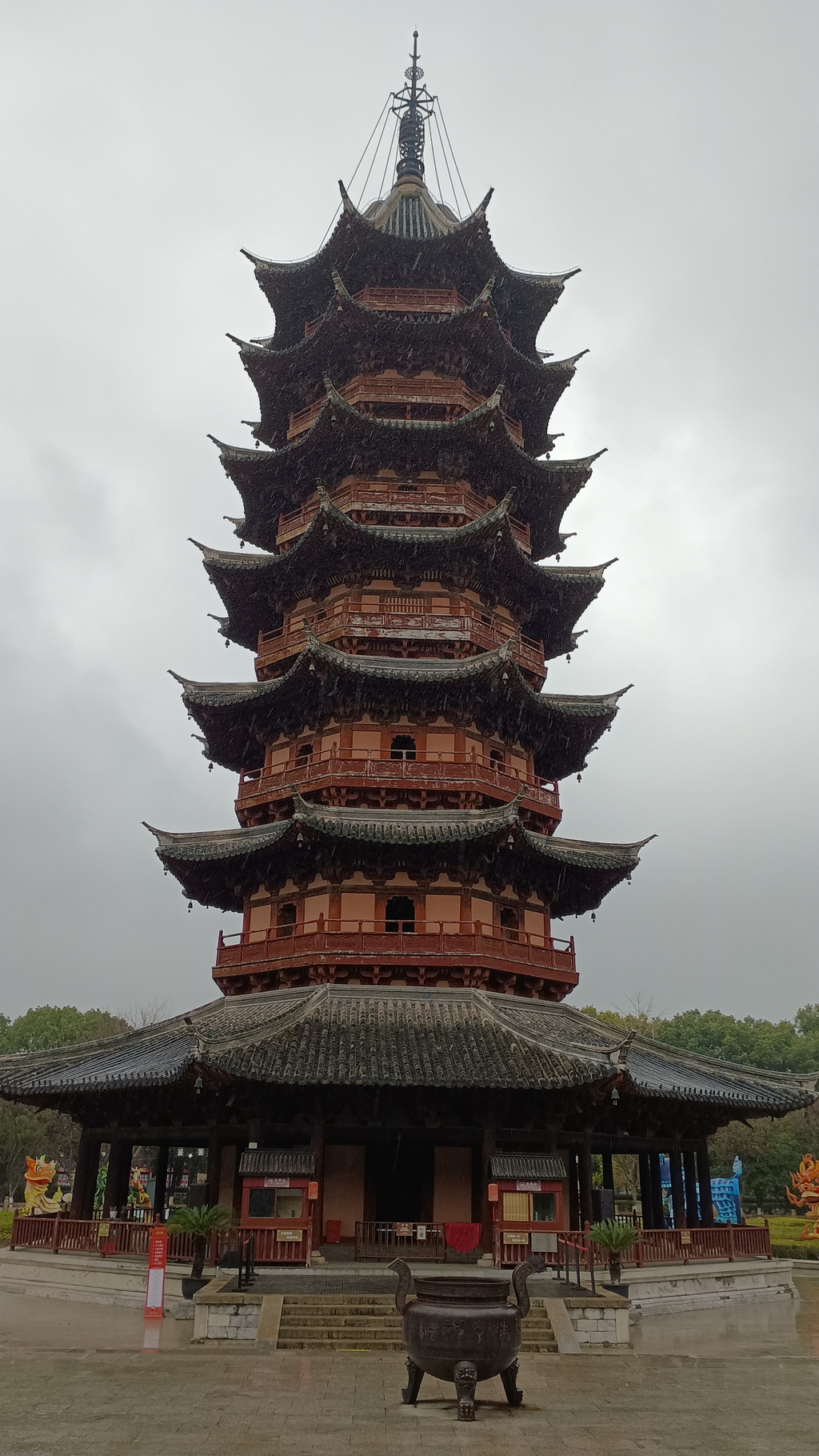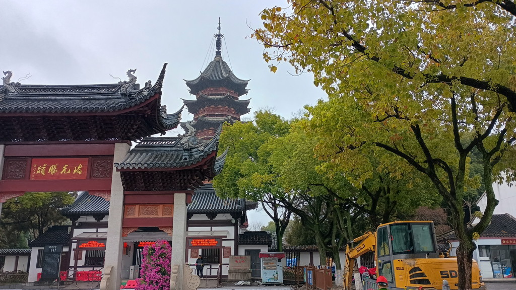ゲートを抜けると入口の前から見えていた、大変見事な7層の塔が目の前にそびえ立っています。これが「端光塔」で、三国時代の247年、呉(東呉)の孫権によって母の恩に報いるために建てられたのが始まりで、蘇州最古の古塔です。13層の塔として建てられましたが、現存してるのは1004年に八角7層の塔として再建されたもので、唐と宋の古代塔の建築様式を残しています。ここでも呉という国名が出てきますが、歴史上、春秋時代の呉と区別するため東呉と呼ばれています。