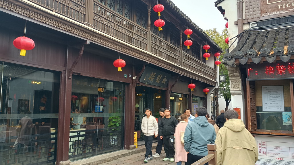 橋のたもと付近には「松鹤楼」という雰囲気のある店構えのレストランがありました。蘇州料理を食べられる有名店だそうです。