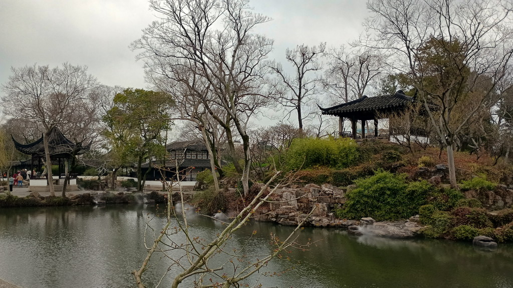 蘭雪堂の先は東園で、この辺りは庭園というよりは、自然豊かな公園という雰囲気でした。拙政園は、もう少し先、草木が生い茂る時期に来るべきなのが良く分かります。この時期が空いているのも納得です。手前の池を挟んで奥に見えるのが天泉亭です。