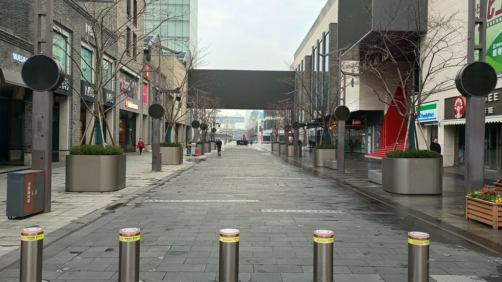 8時前後のタイミングでしたが、ホテル周辺は人影が少なく静かでした。早朝、機械による清掃が行われているようで、昨日同様、通りは塵一つなく綺麗に掃き清められています。日中、大変な賑わいを見せていた東坡路も静まり返っています。