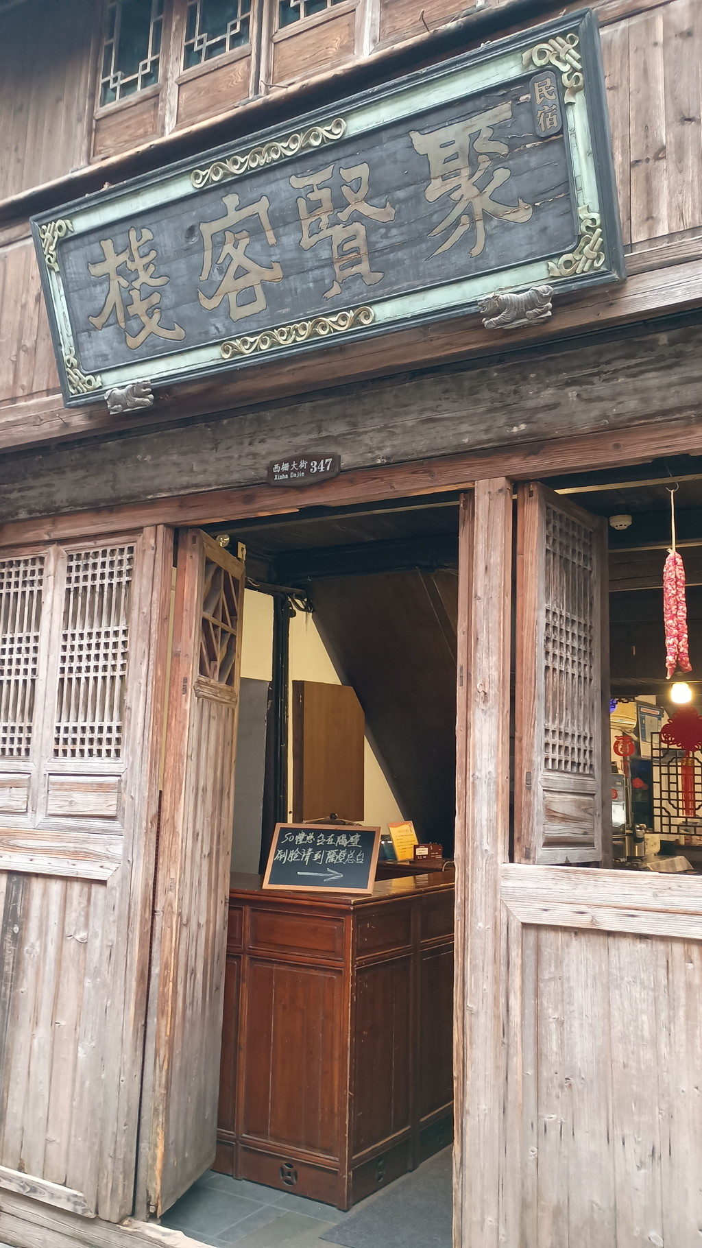 各民宿には固有の名称があるようで、今晩宿泊するこちらの看板には「聚賢客棧」と書かれていました。