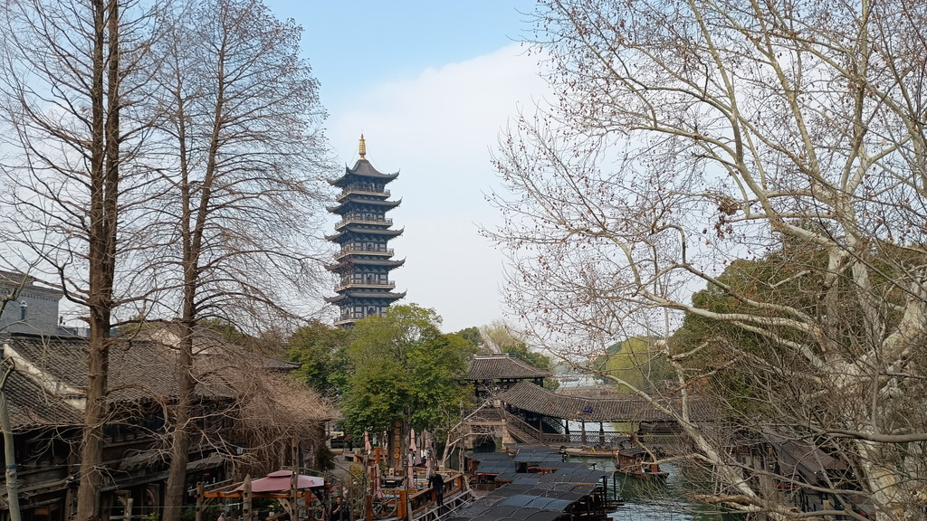 西に見えるのが「文昌閣」、北に遠くに見えるのが「白蓮塔」です。考えることは皆さん同じで、ここは絶好の撮影スポットになっており、何度か足を運んだのですが、いつも大勢の観光客で賑わっていました。鳥鎮の建物を眺めていると、どことなく昔の日本の建物に似ているんですよね。勿論、技術的な細かい様式は違うんでしょうけど、ある時、ふと昔の日本にいるような感覚に陥ることがありました。