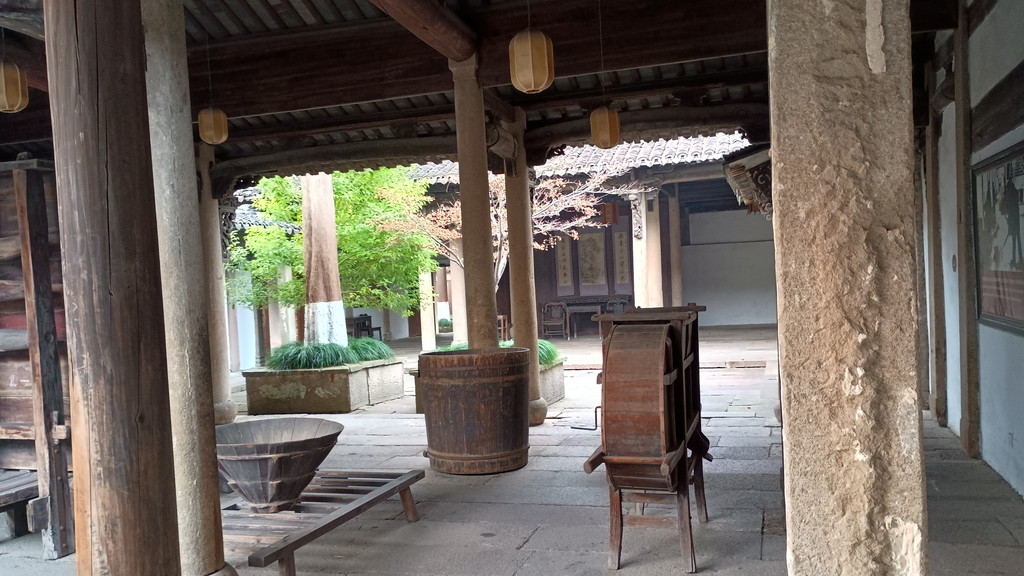 「亦昌冶坊」は、100年の歴史を持つ沈家が代々営んできた鉄器の工房で、調理用の台所用品などが作られました。純粋な鋳鉄から作られ、何度も精錬され、手作業で磨き上げられます。熱伝導が良く、均一に加熱されるという特徴を持ち、地元の人々から深く愛用されたようです。館内の中庭には「天下第一鍋」と掲げられた巨大な鍋が展示されていました。