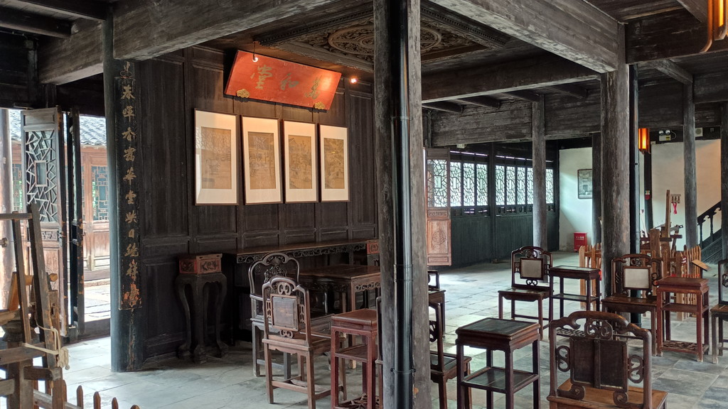 昼間の散策で、通り過ぎていた「昭明書院」の中も覗いてみました。書院の名前は、南朝時代の梁の太子蕭統が鳥鎮に学問の場を建てたことに由来するそうです。