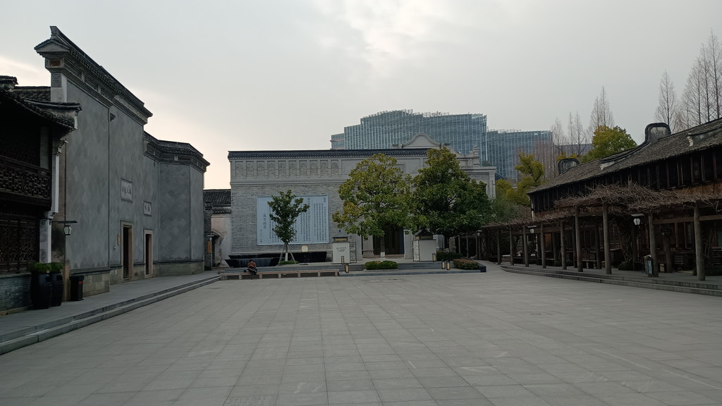 しばらく歩くと、広場(诗田广场)のある場所に出ました。広場の周りにある建物は「益大絲号」と呼ばれる、1875年創業の絹織物の工房だそうです。こちらで織られる独特の手作りの綿は「鳥綿」と呼ばれ、四川の蜀綿と並び国内外で有名だそうです。