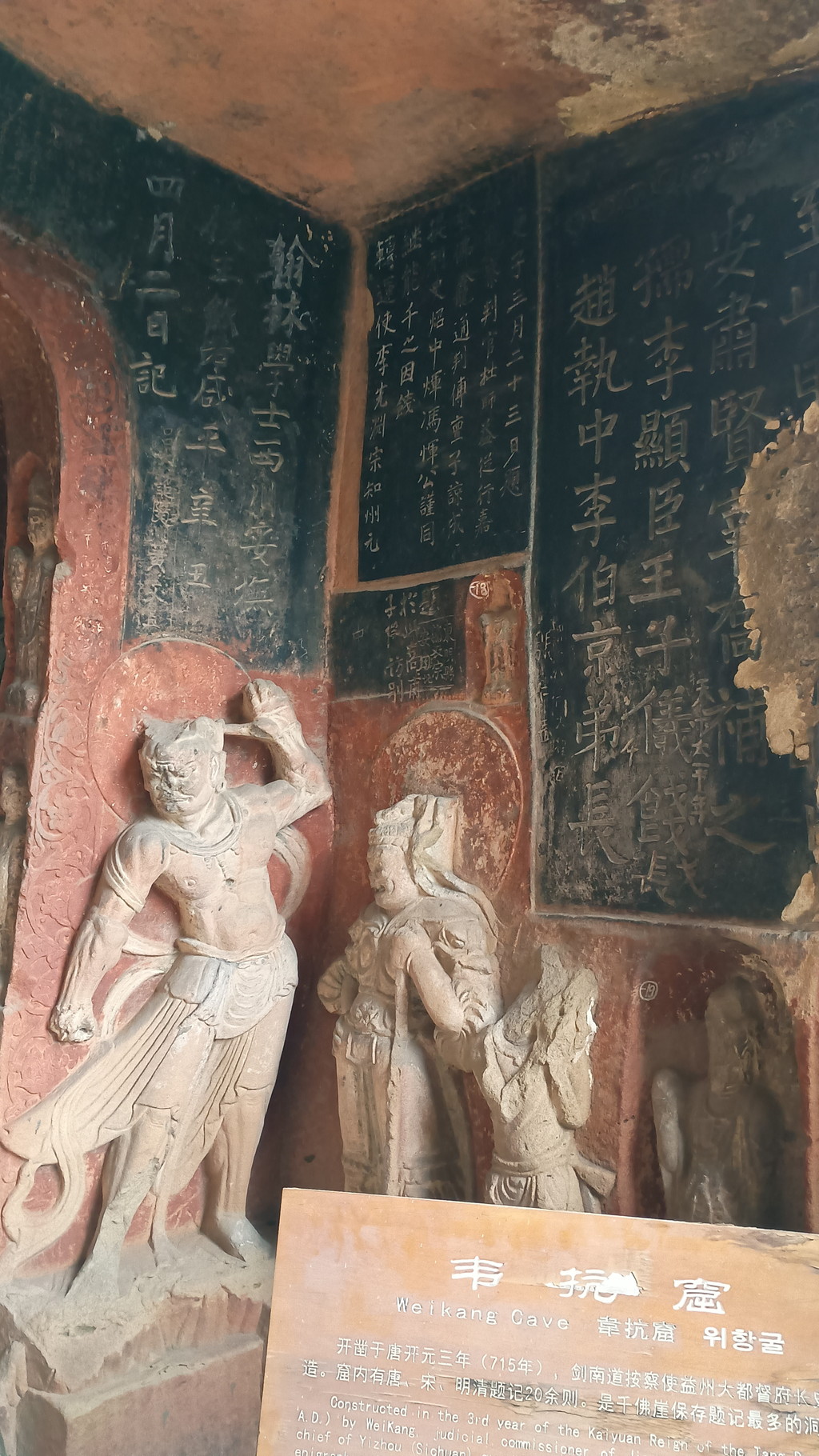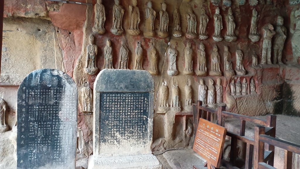 大雲古洞のすぐ隣には、唐の時代、715年に開削が始まった「韋抗窟」があり、唐から宋、明、清代にかけて刻まれた20余りの題辞(题记)があります。