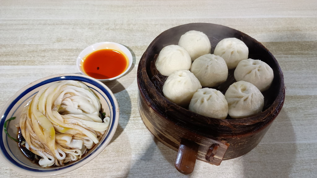 メニューはシンプルで、2種類の小籠包、凉面と担凉面があり、これにスープやお粥、煮卵などの再度メニューが提供されています。注文方法が分からなかったのですが、近くにいた年配の男性スタッフに注文したい料理を伝えたところ、厨房に向かって声を掛けてくれました。今回は、鮮肉小籠包と凉面を頼みました。料金はそれぞれ12元(約280円)と6元(約140円)です。