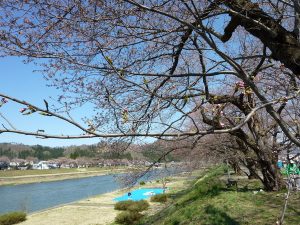 伝承館から西に少し歩くと桧木内川堤(ひのきないがわつつみ)があり、2kmに及ぶソメイヨシノのトンネルがあります。こちらもまだ開花していませんでした。少し早かったですね。