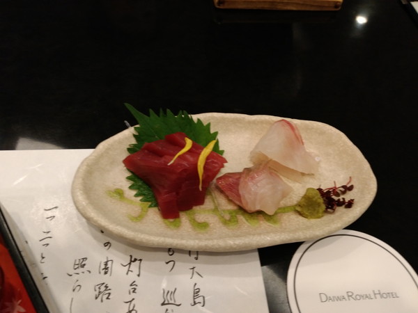 1Fの日本料理のお店「熊野灘」にて和食懐石を頂きました。料理は京懐石のような上品な料理ばかりでした。品数も多いので見た目よりボリュームもあります。造りのマグロは、さすが串本町名物というだけあって、これまで食べたマグロとは一味違いました。高級なカツオと表現したらいんでしょうか?同じマグロでもこんなに違うものなんですね。個人的には大ヒットです。