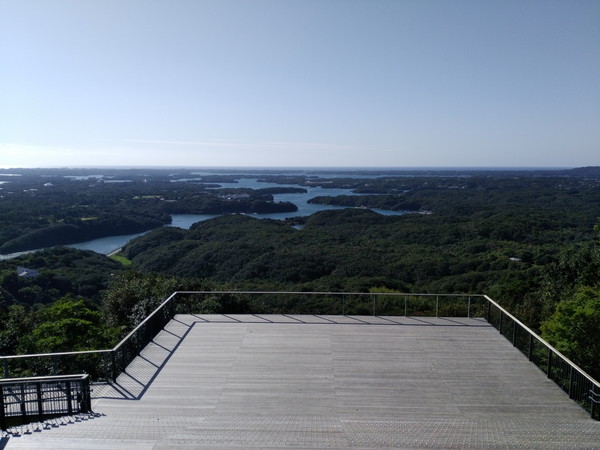 展望台からの眺めは最高の一言です。一面に広がる青い空、青い海、そこに浮かぶいくつもの島々、ガイドブックで観たあの景色が目の前にありました。天気に関しては本当に運なので、ここだけは晴天であることを祈っていたので本当に良かったです。あと、地味なところなんですが、木製のデッキが景色に調和していますよね。