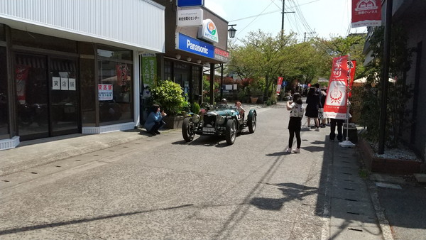阿蘇神社の門前に位置する商店街は多くの観光客で賑わっていました。当日は「Cento Miglia KAMITSUE(チェント・ミリアかみつえ)」というイベントが行われており、世界の名車が集まっていました。
