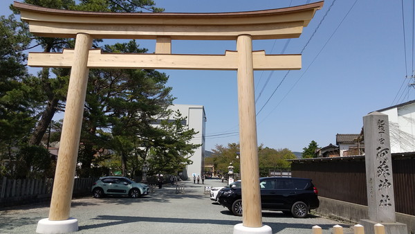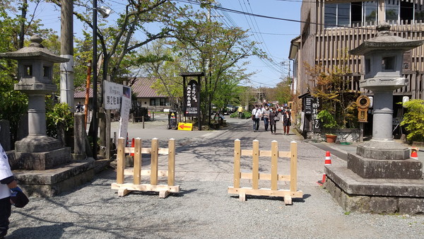 阿蘇駅に戻ると13時を過ぎており、お腹も空いてきたので、約4km東にある宮地駅近くのレストラン(後で詳述)に向かいました。阿蘇駅からは道路がかなり混雑していたので嫌な予感がしたんですが、案の定、宮地駅周辺も大変混雑しておりレストランの駐車場は満車でした。仕方ないので、先に1.5km北にある阿蘇神社を見に行くことにしました。