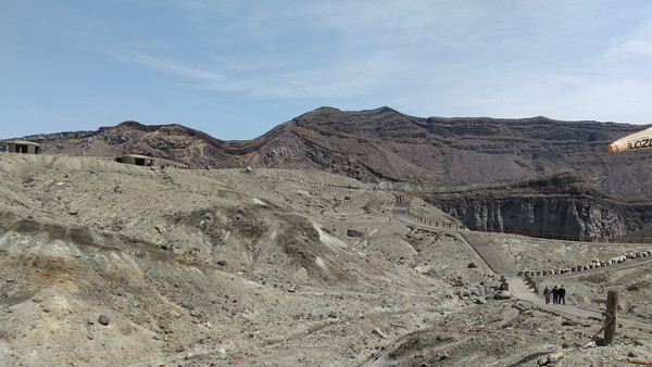 中岳には7つの火口があり、第1火口だけが噴煙を吹き上げています。自然の雄大さを肌で感じるつかの間のひと時です。