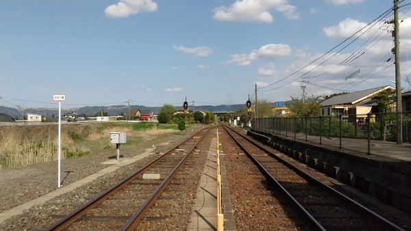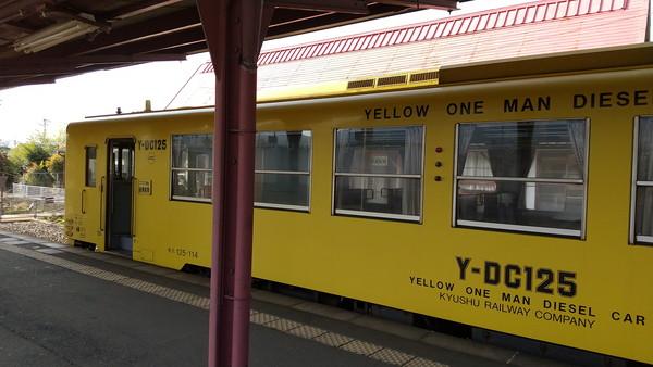 15時53分発のJR豊肥本線の宮地行きに乗ります。二駅で宮地駅に到着です。