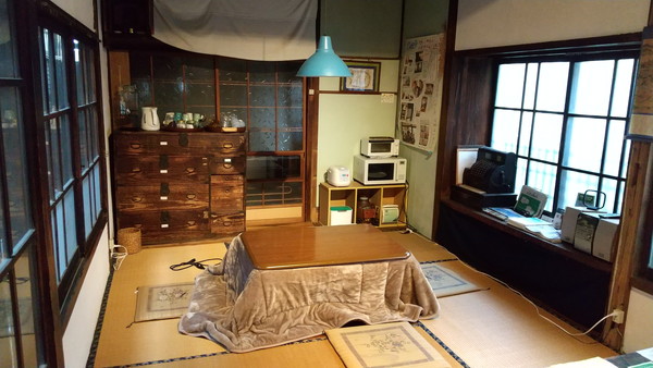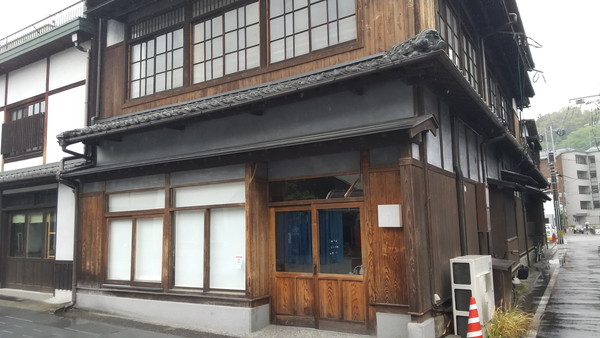 駅から徒歩1、2分で今晩お世話になる「たけだ駅前ホステルcue」に到着です。古民家をリノベーションしたという建物がとてもいい雰囲気です。駅近くには手ごろなホテルがなく、今回は珍しくゲストハウスを利用してみました。