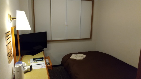無料の朝食付き、楽天のセールで2泊7,100円で予約できました。部屋はとても綺麗で清潔感があります。シャワールームは広く、他のビジネスホテルに比べると湯舟が大きいのが好印象です。冷蔵庫は備え付けられており、エレベーター前のスペースには湯沸かし器や低反発枕、ハンガーなどが置かれており自由に借りることができます。1Fロビーにはウェルカムドリンクサービスがありました。口コミには、繁華街にあるので窓を開けると飲食店からの食べ物の匂いが気になるというコメントが散見されていましたが、個人的には気になりませんでした。