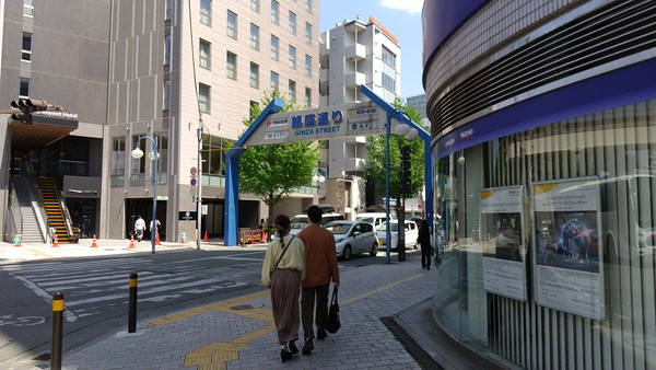 花畑町停留場で下車し、銀座通りを約200m歩くとホテルに到着です。
