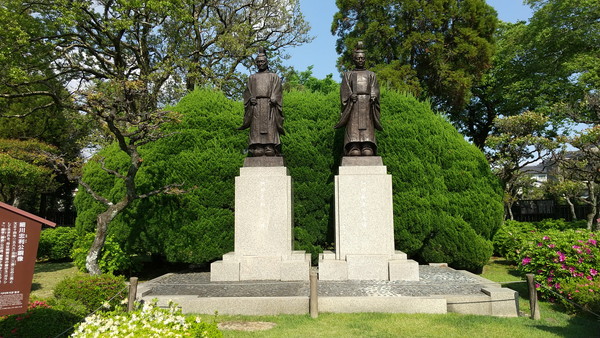 ◆細川忠利公、細川藤孝(幽斎)公銅像