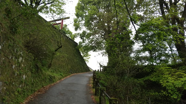 広瀬神社からは岡城跡方面への小道を下ります。そこから真っ直ぐ進んで右手の坂道を上ると岡城跡入口に到着です。豊後竹田駅からだと2km以上はあり、坂道も勾配があるため人によっては歩いて移動するのが大変かもしれません。一応路線バスはあるのですが、便数が少なすぎてあてになりません。観光シーズンは岡城跡行きのシャトルバスが運行しているようなんですが、このようなコロナ禍では望むべくもありません。