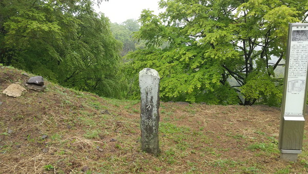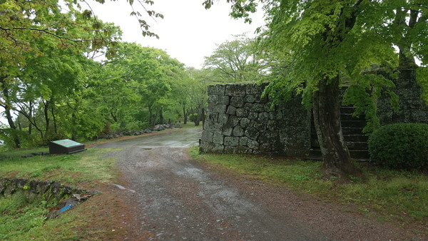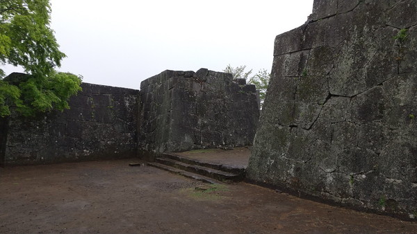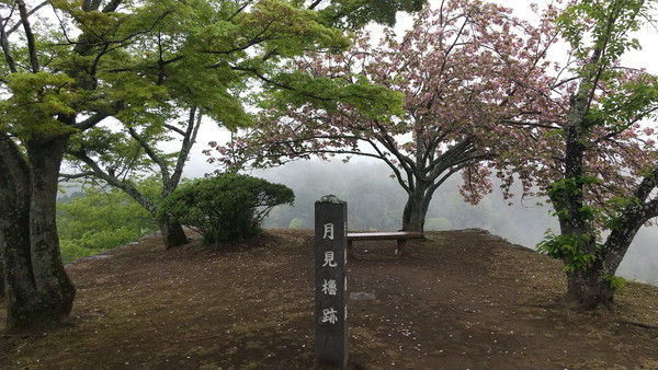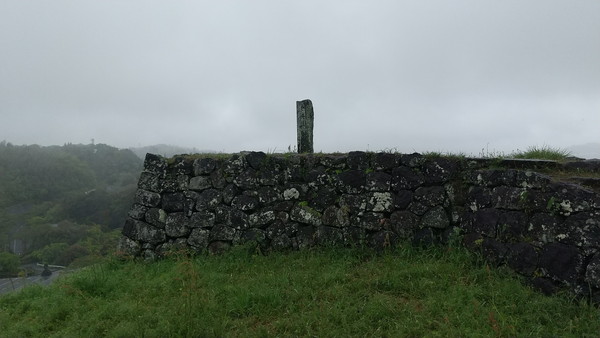 角櫓跡からは周囲を一望できるのですが、この悪天候が残念でなりません。