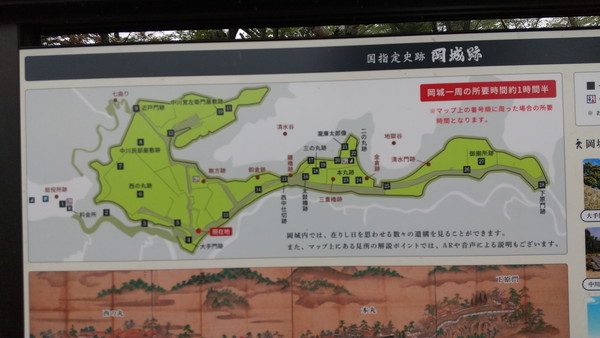 パンフレットでは岡城を楽しめる「本丸ルート」と「西の丸ルート」の2つのコースが紹介されています。まずは、「西中仕切跡」、「太鼓櫓跡」、「三の丸跡」、「二の丸跡」、「本丸跡」を回る「本丸ルート」を進みます。