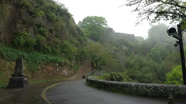 受付から数分歩くと、ようやく「史跡・岡城址」と刻まれた石碑と、大手門に続く坂道が見えてきました。上の方に見える立派な石垣がこの城の壮大さを表してますね。ここを見ただけで、この城はこれまで見たものとは何か違うという確信が湧いてきました。