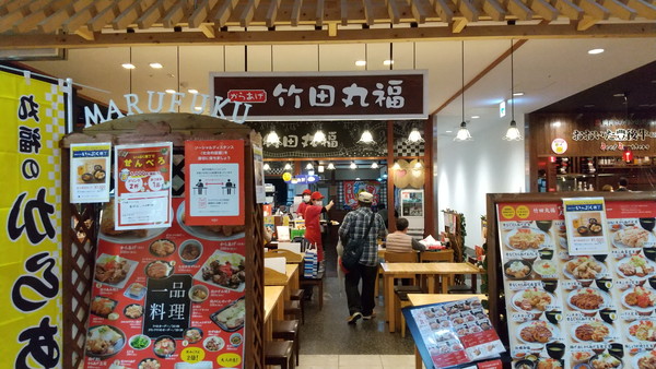 大分駅到着後は、一旦改札を出て駅ビル「アミュプラザ大分」の1Fにある竹田丸福さんでお昼御飯です。竹田丸福さんは大分のご当地グルメの「からあげ」を提供するお店で、本店は竹田市にあります(ゲストハウスのすぐ近く)。実は昨晩、オーナーさんからこのお店をオススメされたんですけど、あまりお腹が空いていなかったのでパスしたんですよね。ただネットで調べると大分駅に支店があることが分かったのでここでリベンジです。
