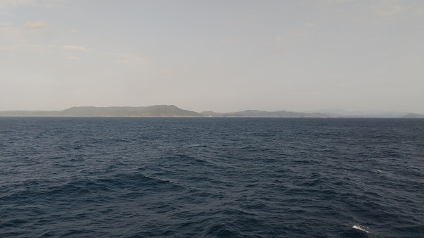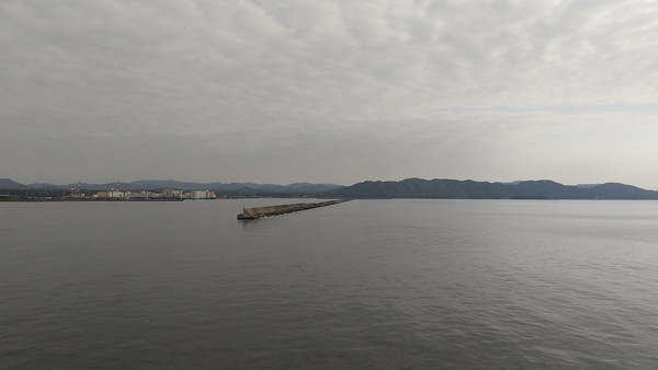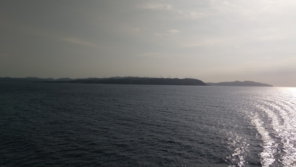 朝食後は志布志港到着までしばらく時間があるので、デッキに出て外の様子を眺めながら時間を過ごします。外は思ったよりも風が強くて肌寒かったです。あと、これは旅行が終わってからの感想なんですが、帰路の「大分→神戸」のフェリーでは早朝(06:35)に到着するため、外の景色や朝食を食べる余裕もなく慌ただしかったんですが、志布志行きは朝をゆっくり過ごせるので船旅しているという実感がありました。