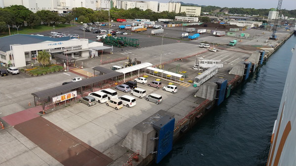 「さんふらわあ きりしま」は予定時刻通り志布志港に到着です。南九州の重要港湾というだけあって、数多くのコンテナが並んでおり、物流の拠点になっていることが伺えます。