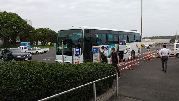 志布志港に到着後、フェリーさんふらわあさんが運行している鹿児島市へのシャトルバス「さんふらわあライナー」に乗り換えます。片道1,900円ですが、フェリーを利用した場合は無料です(2022年3月31日まで)。バスを利用したのは数人だけでした。船には空いていたとは言え100人近くは乗っていた記憶があるので、皆さんほぼ自家用車やトラックでの移動というわけですね。