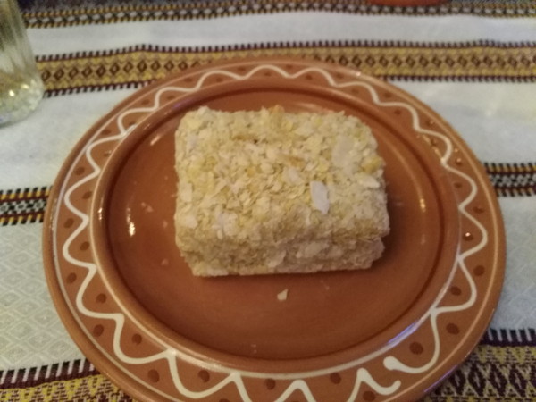 飲み物はロシアでポピュラーなジュース「モルス」を頂きます。とても甘い飲み物で、店によって味が違うのが面白いです。スープは海藻が入った独特の味付けだったのですが個人的には大ヒットでした。そしてメインのキエフ風カツレツですが、今回のツアーで一番でした。大きな卵型の形状をしており、中を切るとずっしりとした肉厚で大量のバターが溶け出してきます。最後のデザートは、見た目ほど甘さが強くなくミルフィーユのような食感でした。