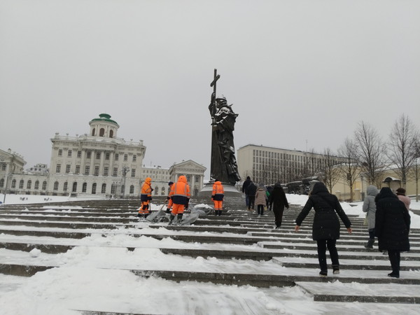 武器庫の見学を終え、近くにあるボロヴィツカヤ塔から外部に出ます。クレムリンの南西に位置し、近くにはウラジミール大公の像があります。