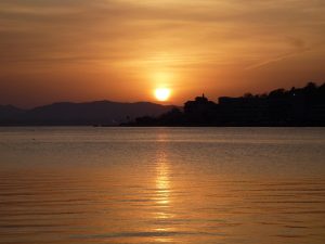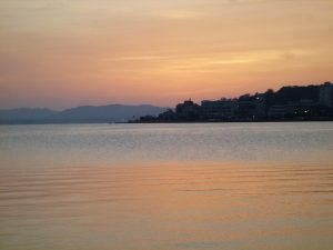 一旦、今日宿泊するホテルにチェックインし、この後どうしようかなーと検討していたところ、宍道湖の夕日は絶景らしいという情報を得ました。夕日を見るポイントまで徒歩10分程度、天気も良好であり、これは行くしかありません。