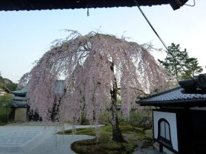 高台寺が夜間特別拝観をしてので、立ち寄ります。駐車場の桜が綺麗でした。