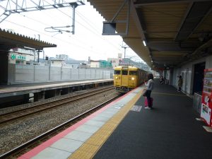 新白島駅から岩国駅行きの普通電車に乗り、宮島口駅まで移動します。25分程度で着きます。