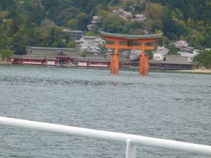 宮島には10分程度で着きます。私はJR西日本のフェリーに乗ったのですが、こちらの方が大鳥居の近くを通るようです。