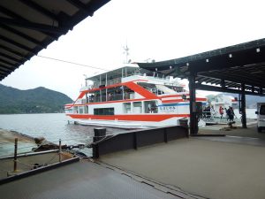 宮島口駅を出て、宮島口フェリー乗り場に徒歩で移動します。5分程度の距離です。宮島行きフェリーはJR西日本と宮島松代汽船の2社が運航しています。どちらも片道180円で15分に1便程度出ています。平日なのにフェリー乗り場はそこそこ混んでいましたが、次の便がすぐに出るので、それほど待ち時間はありませんでした。外国人観光客がとても多いですが、ここは欧米の方の姿が目立ちます。フランス語や東欧辺りの言語が飛び交っています。