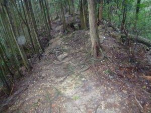 途中、毛利元就・一族墓所があります。この辺に来ると、通路も整備されており歩きやすくなっています。