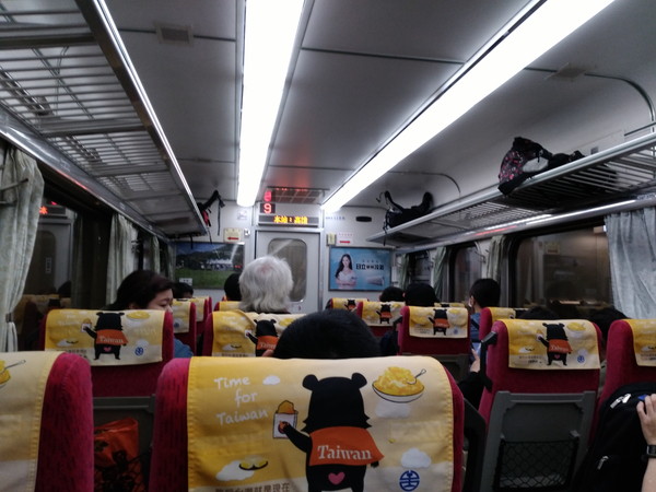 この列車は始発「潮州駅(高雄の東)」から終点「八堵駅(台北の東)」まで約6時間で台湾を横断します。高雄駅から台中駅までは10駅約2時間半の行程です。