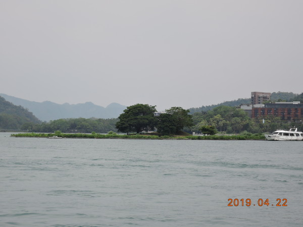 中国語の案内を聞きながら玄奘寺に移動します(約10分)。途中、日月潭の由来で出てきた拉魯島近くを通ります。